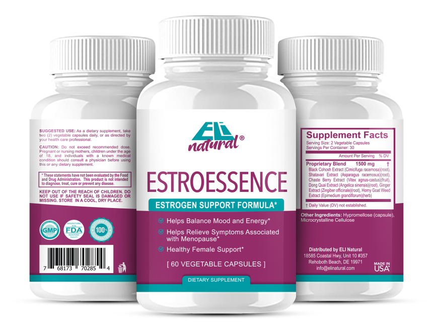Be the first to review “ELi natural ESTROESSENCE Capsule for Women – Female Hormone Balance Supplement Menopause Mood and Energy Support – Restores Healthy Estrogen Levels | 60 Non-GMO Vegetarian Veggie Capsules”